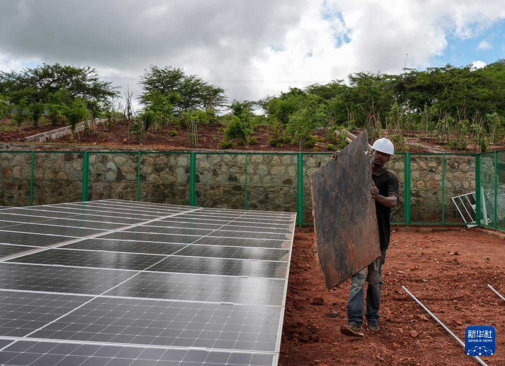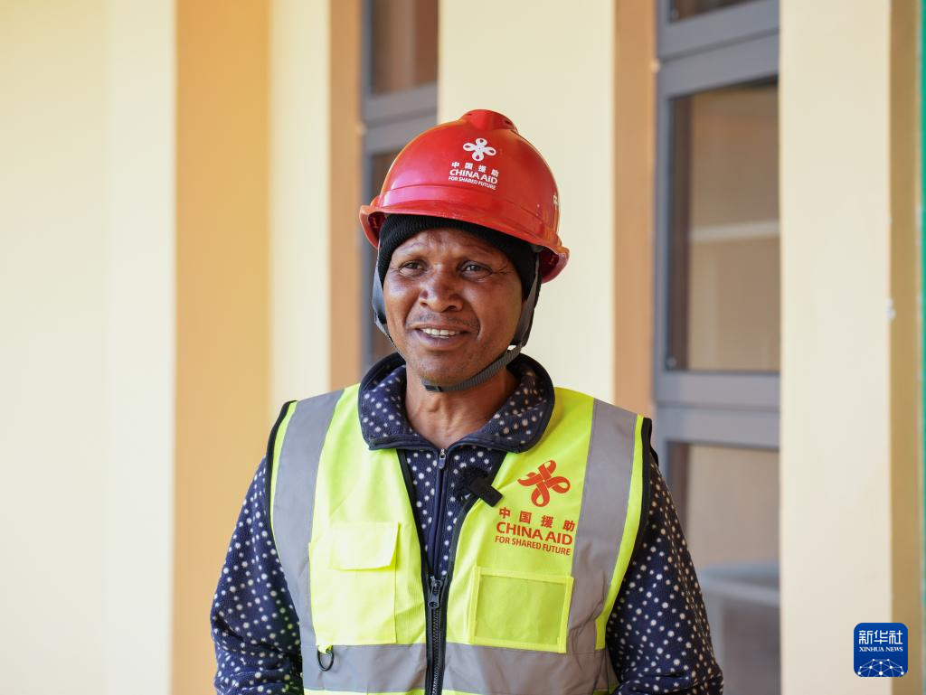 4月26日,在坦桑尼亚阿鲁沙恩戈罗恩戈罗-伦盖地质公园,一名工人在博物馆施工现场工作。新华社记者 李亚辉 摄