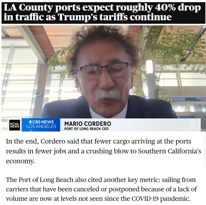 塞罗卡:“未来两周内,我们的进口业务将下降大约三分之一,随后的一周降幅可能高达40%。大多数美国进口商表示,他们已经停止从中国发货,因为他们根本无法接受商品成本翻两倍半的局面。”