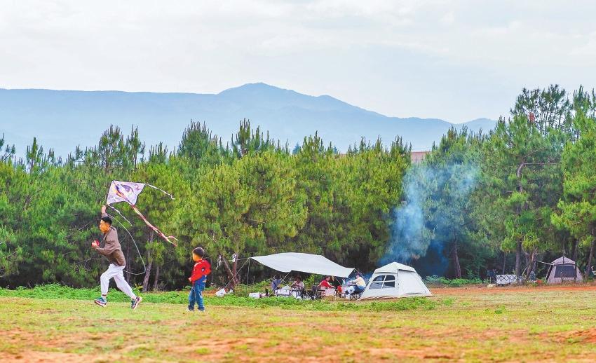 游客在寻甸县北大营天然草场露营。 本报记者 高吴双 摄