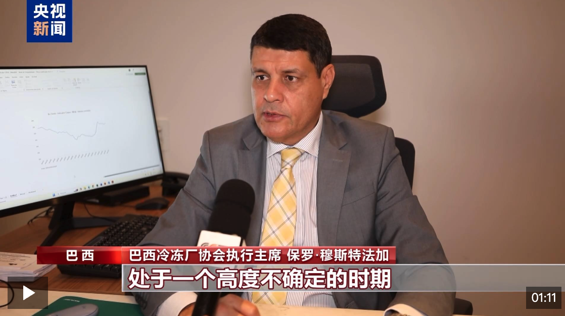 巴西是世界上最大的牛肉出口国之一。根据巴西肉类出口商协会的统计,2024年,巴西共出口牛肉289万吨。面对美国的关税政策,巴西牛肉出口面临哪些挑战?近日,总台记者采访了代表巴西肉类屠宰、加工和出口企业的行业组织巴西冷冻厂协会执行主席。
