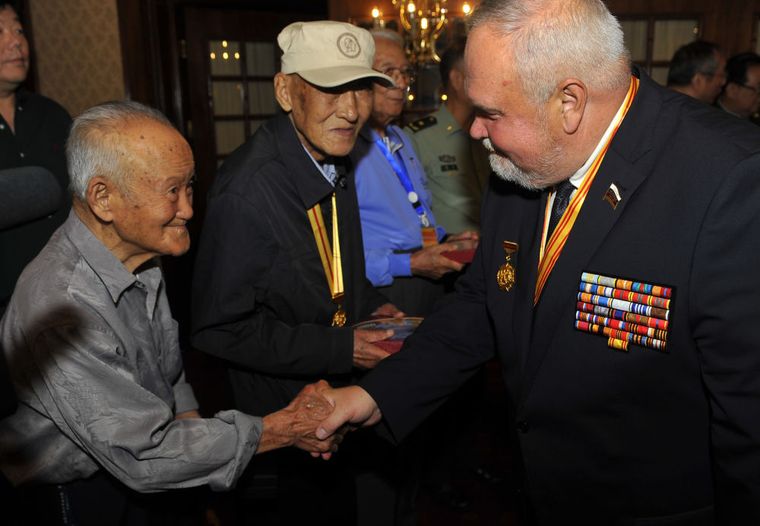 现年65岁的尼古拉,从小在外祖父那里听到很多关于中国的故事。多年来,他一直致力于俄中友好事业,现任俄中友协副主席。在他心中,有一枚勋章意义重大。2015年5月,习近平主席访问俄罗斯期间,会见了俄罗斯老战士代表,并颁发了纪念奖章。尼古拉也在其中。