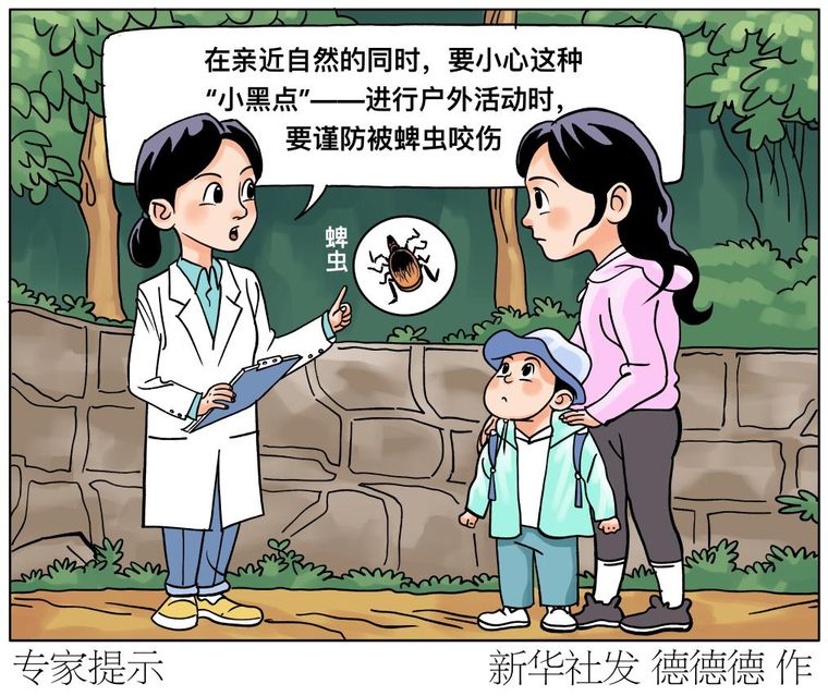 专家提示,被蜱虫叮咬后不可硬拔或拍死,会导致蜱虫口器断裂,易留体内,增加感染风险;被叮咬后也不要用火烧、涂酒精,或直接用手捏,以免刺激蜱虫分泌更多毒液,或挤压出病原体。