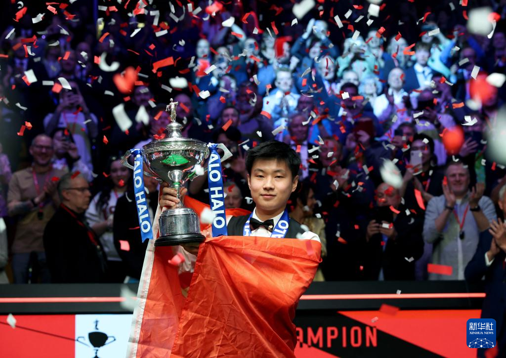 新华社北京5月6日电 记者郑直 张薇 斯诺克圣地克鲁斯堡剧院英国当地时间5日见证了这项运动新的历史时刻。中国球员赵心童在决赛中击败“金左手”马克·威廉姆斯,成为斯诺克世界锦标赛历史上第一位举起冠军奖杯的中国人乃至亚洲人。夺冠之后,赵心童将五星红旗展开,在球台旁边高高举起。