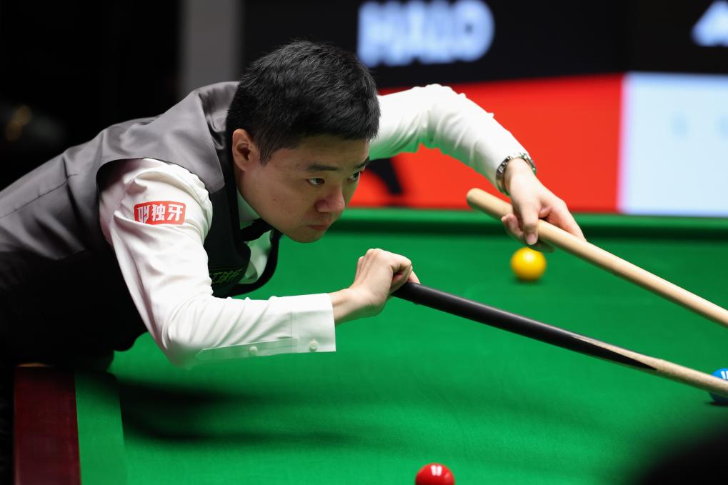 4月22日,丁俊晖在比赛中。新华社发(翟政摄)