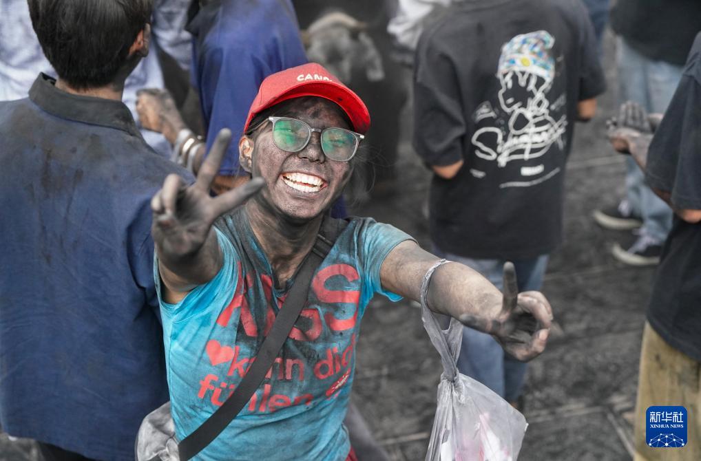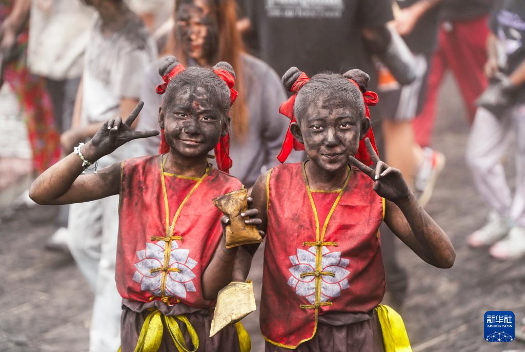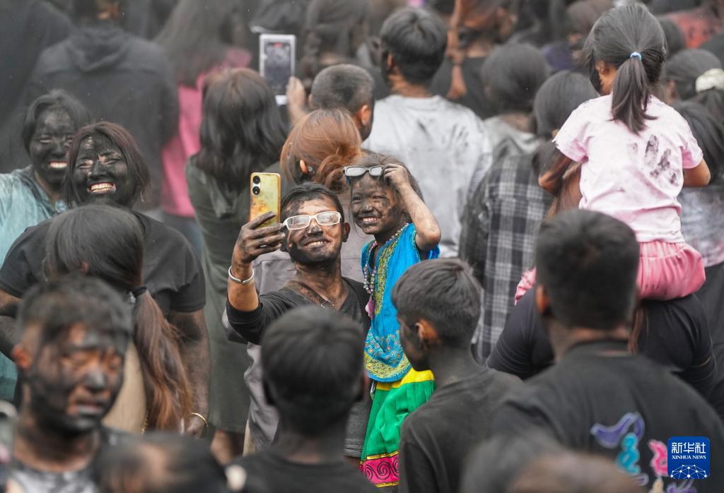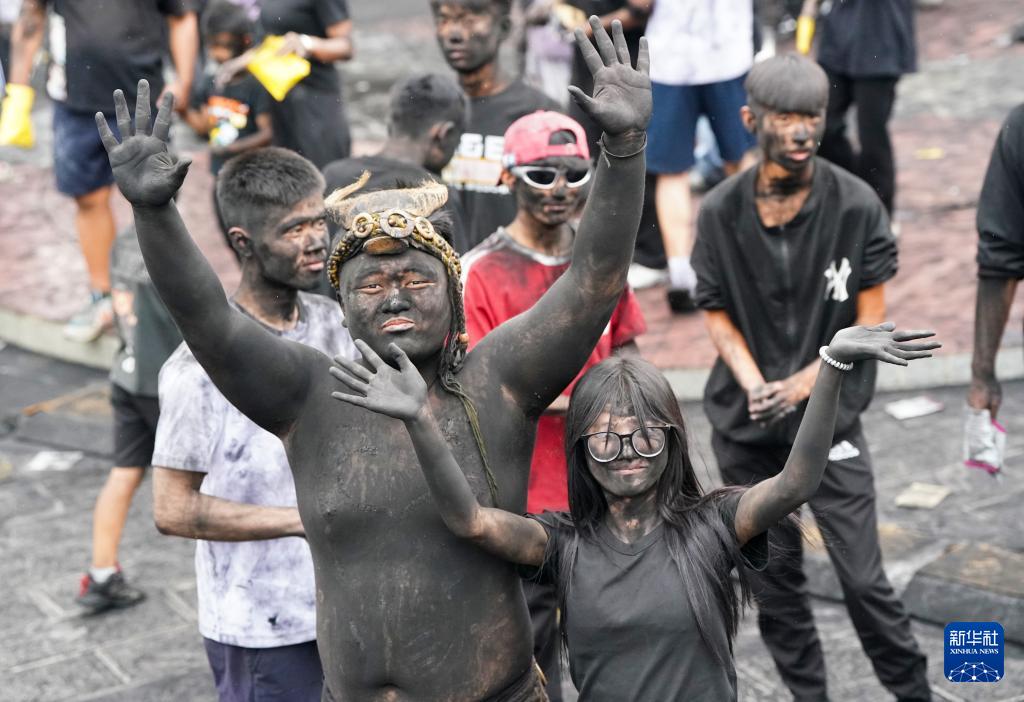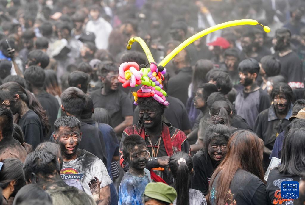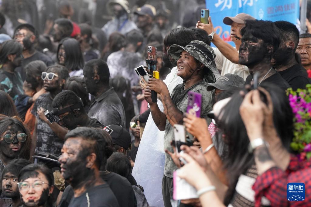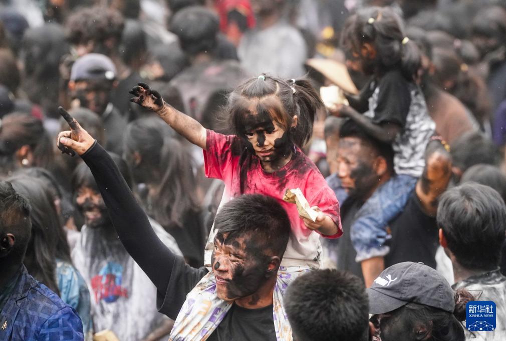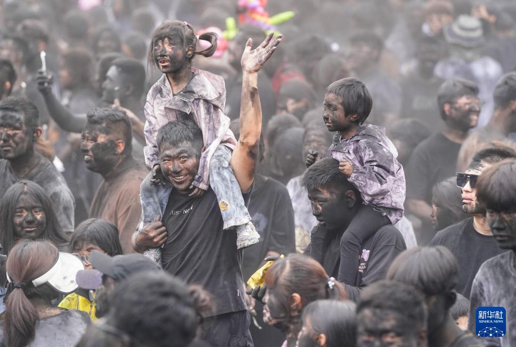 当日,“抹黑脸”狂欢活动在云南省普洱市墨江哈尼族自治县太阳广场举行,当地群众与各地游客通过相互涂抹黑脸的方式互致祝福,这一传统民俗活动承载着人们对美好生活的期许。新华社记者 陈欣波 摄