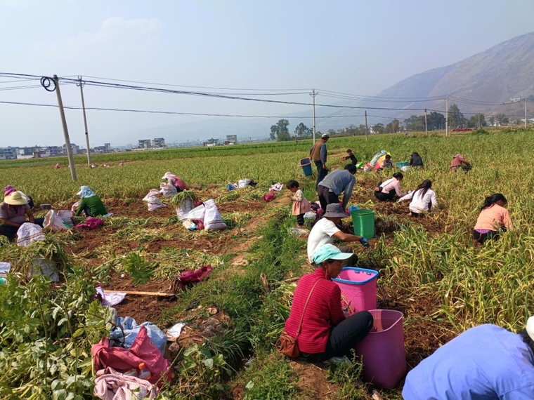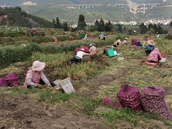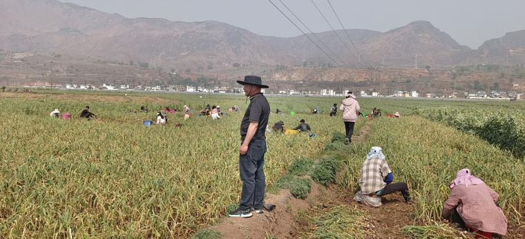 今年4月,正是大蒜收获季,梨园社区及驻村工作队前往三川镇东河村、东山营村及永北镇兴营村等大蒜规模种植村进行调研。经与当地种植户沟通协商,成功达成用工合作意向,种植户同意前往社区接送务工人员。
