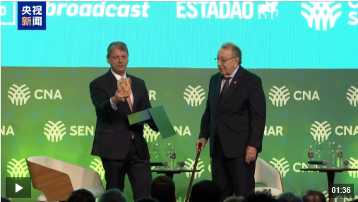 巴西农业和畜牧业联合会总裁 若昂·马丁斯:我们与中国的关系日益密切,我们期望中国继续成为巴西农业非常重要的合作伙伴。