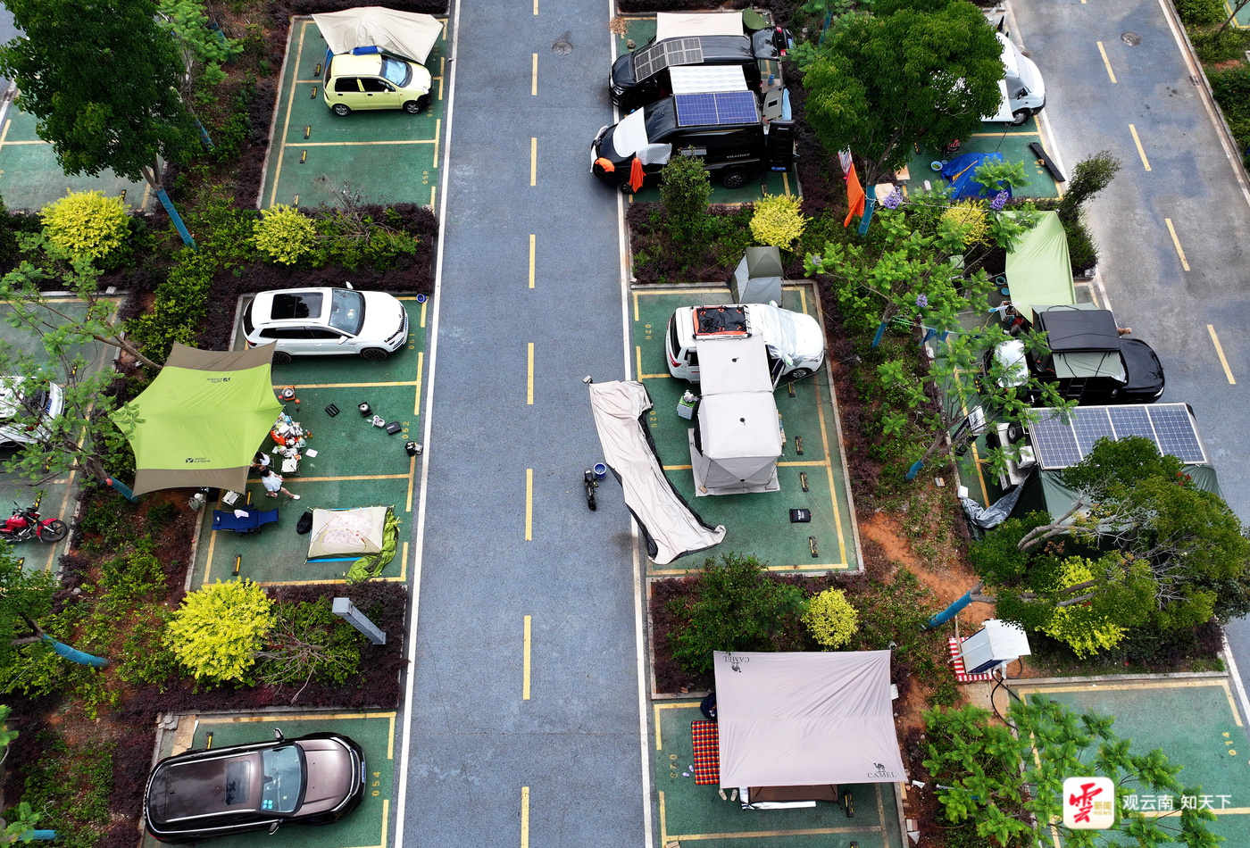 巧家县人民政府房车露营地里,新能源充电桩、公厕、自来水等设施一应齐全。营地绿树成荫、视野开阔,离湖滨岸边直线仅一两百米。贵A车牌的刘刚一人一车已在此扎营一个多月,他的帐篷里,除了生活用具还有两台小洗衣机和一辆小型折叠电动自行车。“这里停车免费,配套齐全,旁边不远处就可以买菜,网购还能送达,真的很方便。”退休后一直自驾旅行的刘刚表示,走过好多地方,云南让他产生了要留下来的想法。“蒙古的一位大哥过几天要来云南,我和他约好‘五一’节后到昆明周边找地方找房子。我俩在自驾圈发起旅居云南的活动,打算约几个好友一起在云南寻一个地方养老。”