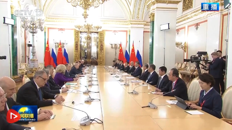 当地时间5月8日上午,俄罗斯总统普京同中国国家主席习近平在莫斯科克里姆林宫举行会谈。两国元首就中俄关系和重大国际和地区问题深入交换意见,一致同意坚定不移深化战略协作,推动中俄关系稳定、健康、高水平发展;共同弘扬正确二战史观,维护联合国权威和地位,维护国际公平正义。