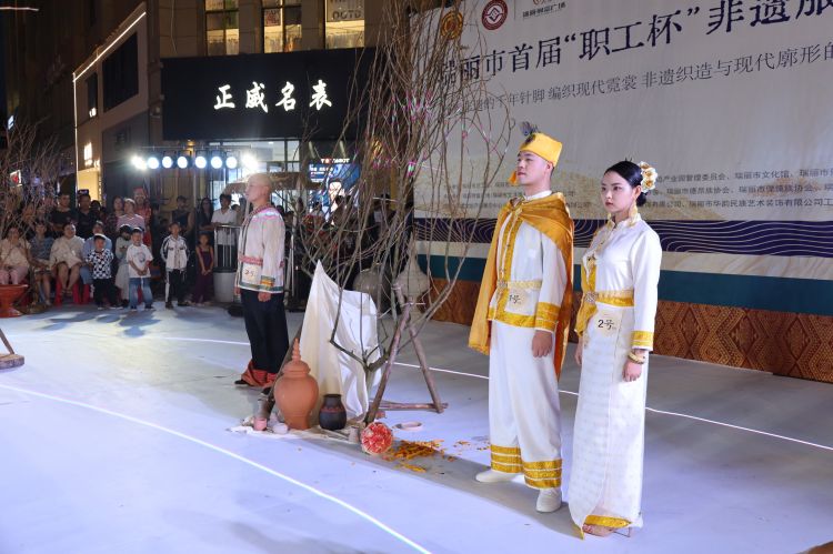 5月9日晚,一场承载着民族文化基因的时尚盛宴——瑞丽市首届"职工杯"非遗服装设计大赛在瑞丽财富广场举办。在公证人员的全程见证下,来自全市的19位设计师携77套民族服饰精品同台竞秀。这场以"财韵非遗・裳影逐光"为主题的赛事,不仅展现了边疆非遗的独特魅力,更成为深化产业工人队伍改革的创新实践。