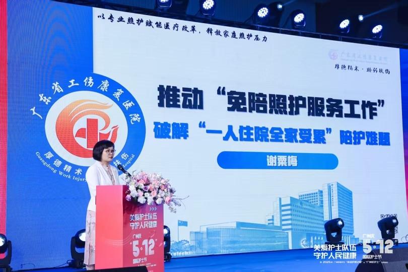 在主题分享环节,广州市第一人民医院护理部副主任李萍介绍了移动护理PDA、智能穿戴设备、“广州健康通”平台等数字化应用在护理流程中的全面覆盖。相关科技手段不仅提高了护理工作的效率,还实现了技术创新与人文关怀的有机融合。广东省工伤康复医院护理部主任谢粟梅则分享了“免陪照护”试点的成功经验,数据显示患者满意度显著提升,病区风险发生率和家属陪护支出大幅下降。