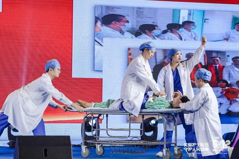 在本次活动的展演环节,多家医院创新艺术形式,为护理工作者们呈现了一场震撼心灵的视听盛宴。广州医科大学附属第一医院带来的舞蹈快板《不一样的“男”丁格尔》,以刚柔并济的艺术语言,生动展现了当代男护士群体的职业风采;广州医科大学附属第二医院的情景舞蹈《守护者的光》,则通过富有张力的舞蹈叙事,将护理工作者比作永不熄灭的生命之灯。舞者们以优雅而坚定的肢体语言,再现了临床护理中的动人场景,赢得了现场观众的热烈掌声。