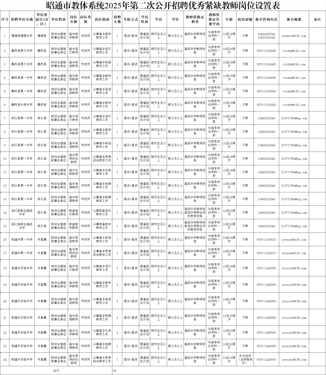 昭通市教体系统2025年公开招聘优秀紧缺教师通告(第二号)