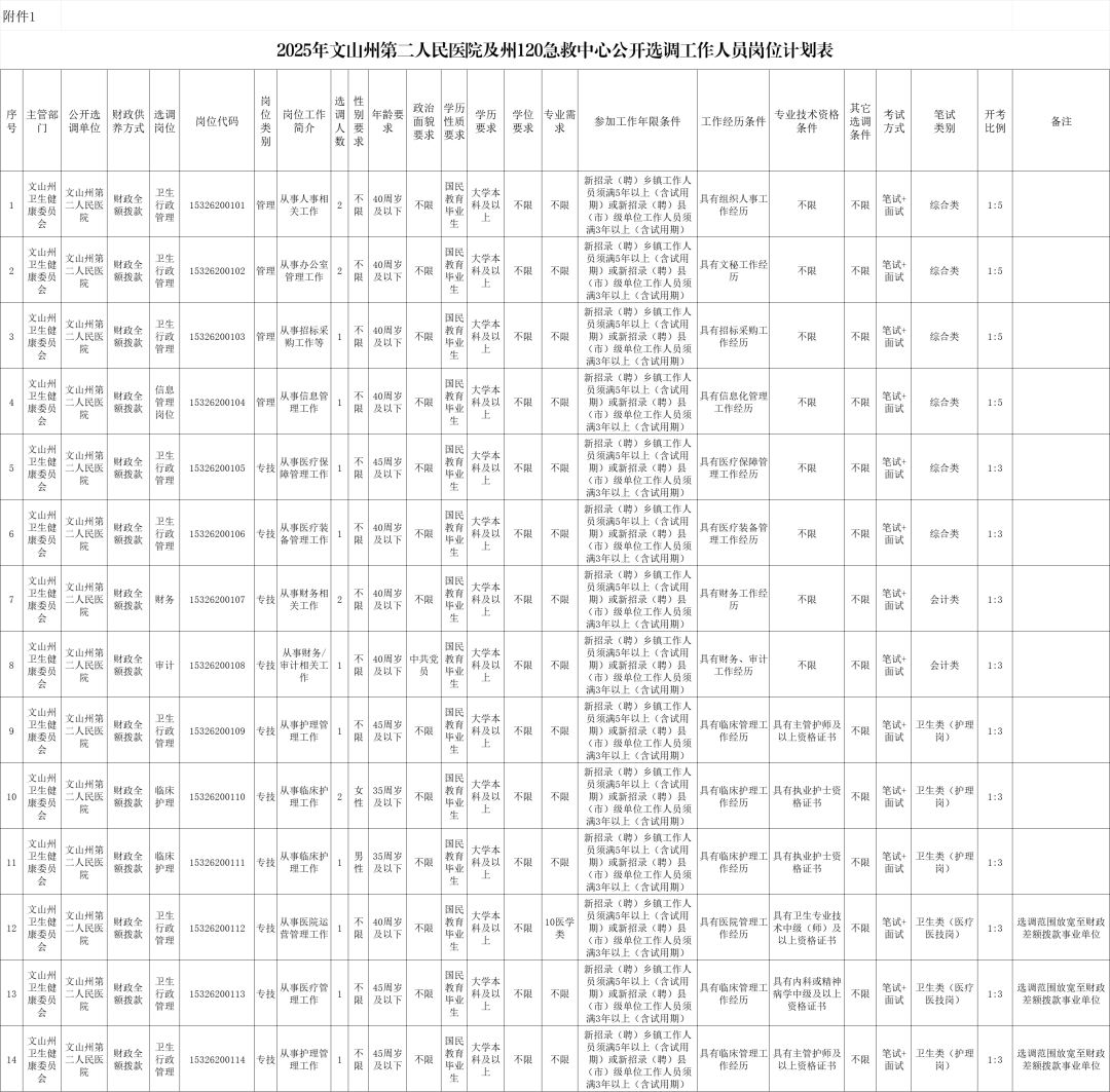2025年文山州第二人民医院及州120急救中心公开选调工作人员通告
