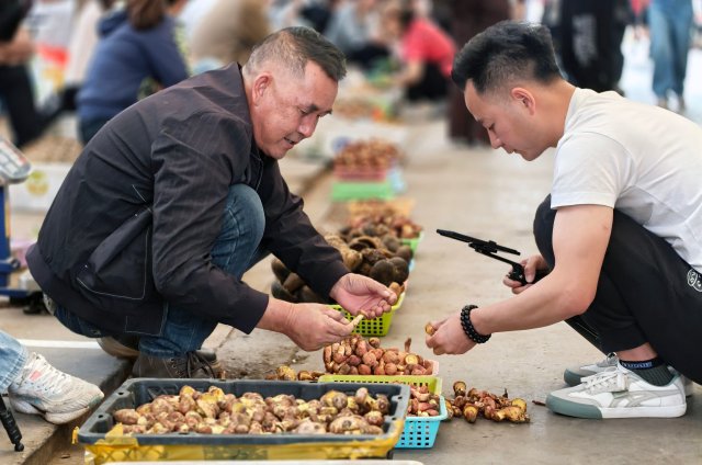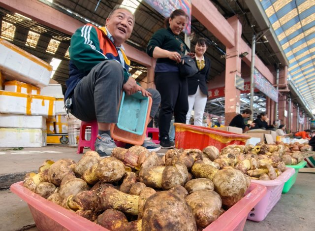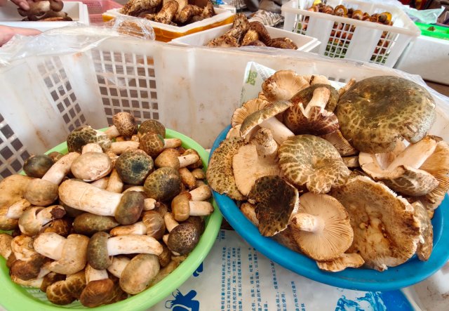 “雨季到来,市场内野生菌单日上市量从上周的几百公斤增加到近2吨。今年二三月遇上降温,加之雨水少,对野生菌生长有一定影响。整体来看,今年野生菌上市时间比往年晚了20天左右,数量和种类都偏少。”6月各地雨水充沛,野生菌将大量上市,价格也会逐步回落。届时,大家能尝到更多鲜美的野生菌。(开屏新闻 记者王宇衡 周柯妤 摄影报道)