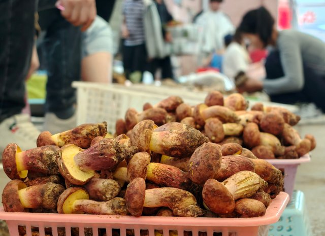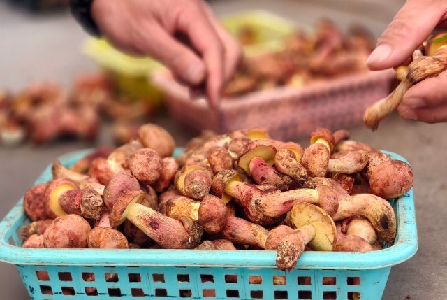 目前在售野生菌大多产自云南,预计6月中旬,野生菌将大量涌入,全国各地的野生菌都会进入市场销售。“目前市场上的野生菌大部分来自文山、普洱等地,还有少部分来自香格里拉,昆明周边地区野生菌还未上市。”一名商户说,“我卖得最好的是见手青和谷熟菌,每天要卖几十公斤,价格根据当天野生菌的品相和质量有所变化”。