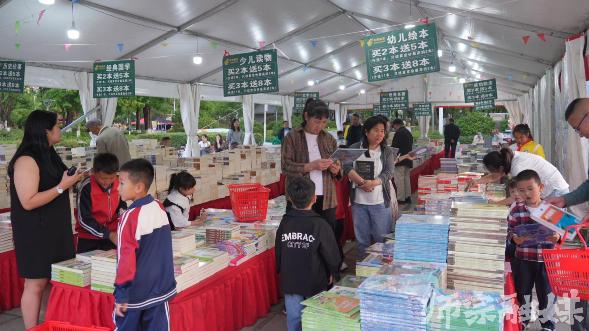 活动现场设置了经典国学区、幼儿绘本区、文学小说区、历史故事区等多个板块,涵盖文学、历史、科普、少儿读物等各类书籍5000余种,并推出购书优惠、免费赠书等活动,吸引众多市民驻足参与。许多家长带着孩子前来挑选书籍,现场阅读氛围浓厚。