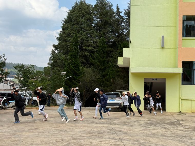 操场上,随着一阵急促的警报声响起,地震应急疏散演练正式开始。学生们迅速按照所学知识,就近躲在课桌下、墙角处进行紧急避险。待“地震波”减弱后,在老师和消防员的引导下,大家用手、书本等护住头部,弯腰低姿、有序地从教学楼撤离至操场安全区域。