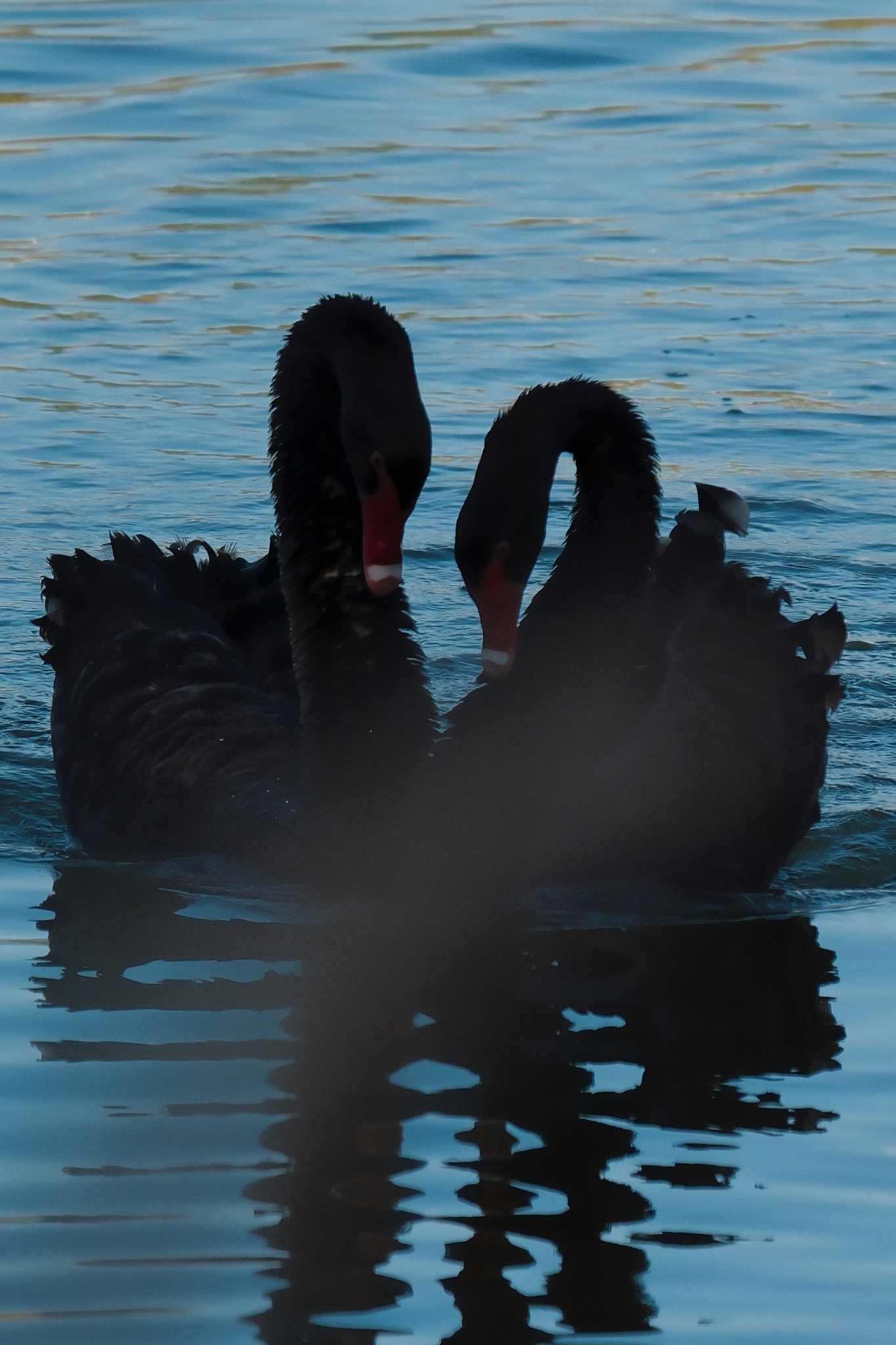波光粼粼的湖面上,有的黑天鹅在曲颈梳羽,有的优雅地游弋着,有的带着宝宝出游觅食。