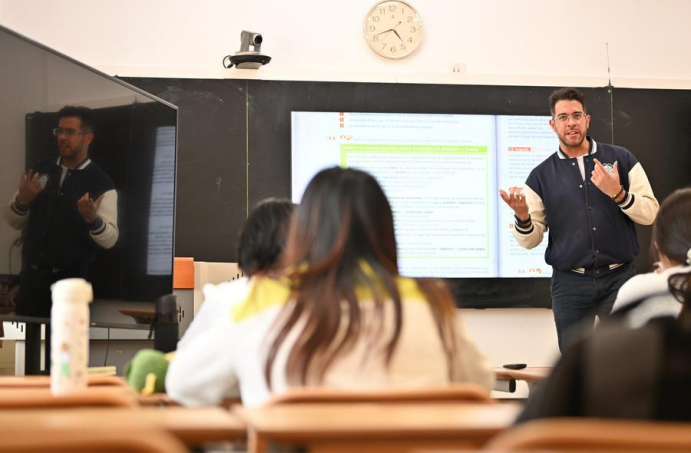 4月29日,吴瑞龙在南开大学外国语学院给学生上课。