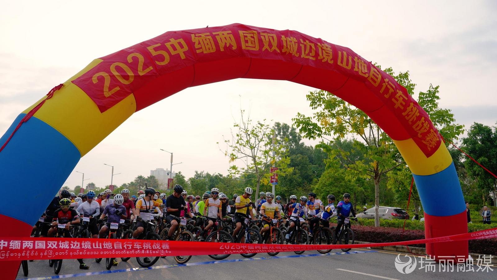 5月17日,德宏州首届户外系列赛“2025年中缅双城边境山地自行车挑战赛”开幕。来自中缅两国的389名选手齐聚瑞丽,以车轮为笔,在山水间书写胞波情谊与竞技魅力的动人篇章。