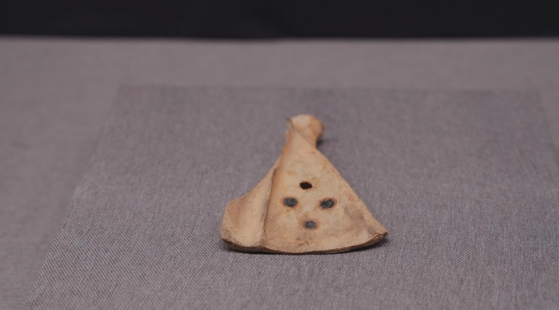 西域都护府博物馆馆长 唐羽岚:卓尔库特古城它出土的遗物,其中有一些非常的独特,而且应该说是全疆也是唯一性的,其中有三枚就是保存得非常完整,品相非常好的卜骨。