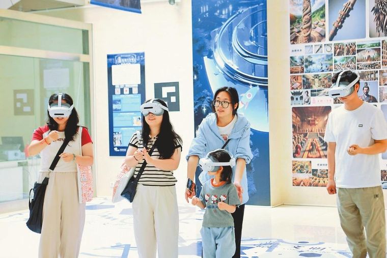 市民游客在昆明市博物馆“文明一万年”AI+VR沉浸式探索展感受历史与科技的对话。本报记者 高吴双 摄