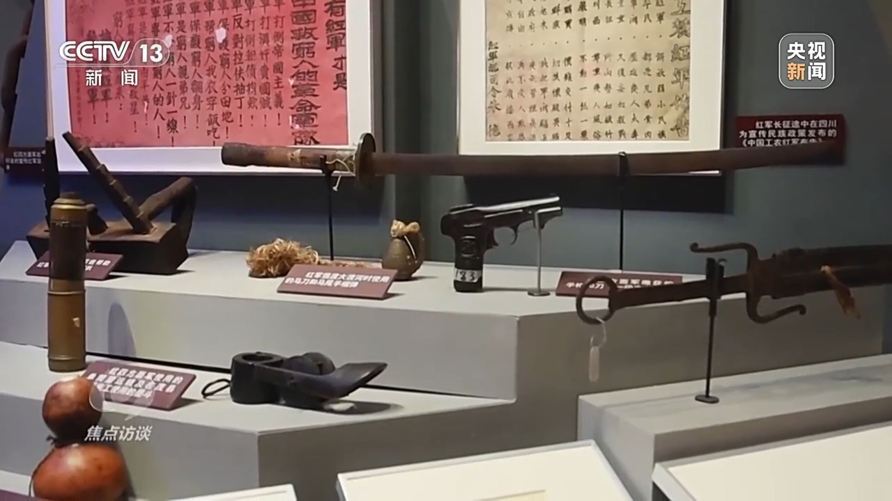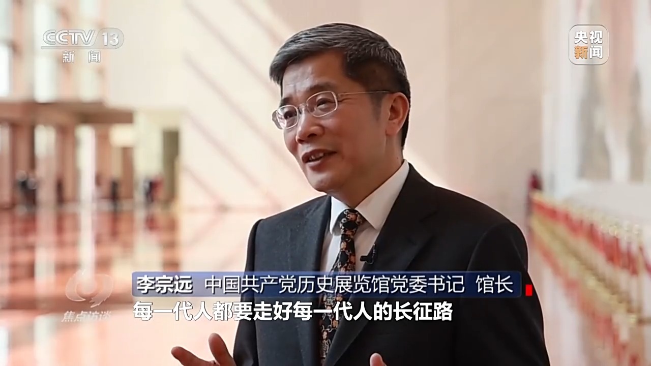 李宗远:总书记说过,每一代人都要走好每一代人的长征路。我们在展览当中,运用大量文物来复原场景,通过现代化的科技手段,营造出爬雪山、过草地的艰辛,艰难困苦的年代,很多观众看完之后都有很多沉浸和沉思,让观众通过文物背后的故事汲取更强烈的精神价值。