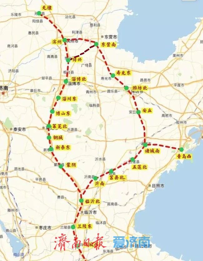 由上图可见,从滨州出发,一路向南,可以到淄博、莱芜,再到临沂,最后接上京沪高铁;也可以一路向北,到东营,再往北走,真正激活了四通八达的高铁路网。