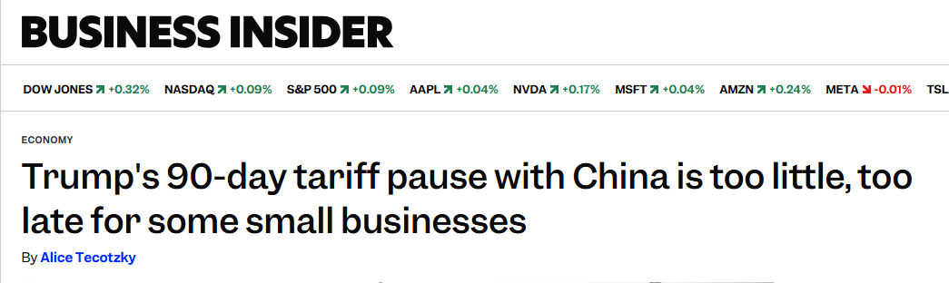 美国《商业内幕》网站近期发布的一篇报道注意到,对于一些小企业来说,90天的关税暂停期“不够长”,让他们无法放手规划未来业务,或者拓展现有业务。