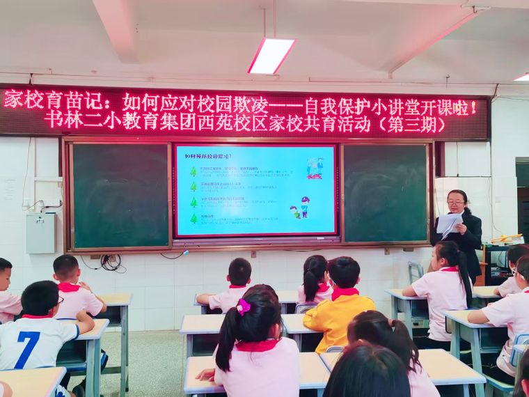 在家校共育活动中,学校邀请家长代表为孩子们带来了一场别开生面的安全教育课,提高学生的法治观念和自我保护意识,并教会他们如何识别和应对校园欺凌现象;聚焦情绪管理,向学生们传授了实用的情绪调节方法,鼓励他们勇敢面对生活中的挑战,成为情绪的主人。另外,特邀云南师范大学教育学部教授杨斌进行专题讲座,深入探讨家庭教育的重要性,强调家长在孩子成长过程中应扮演的角色与责任。