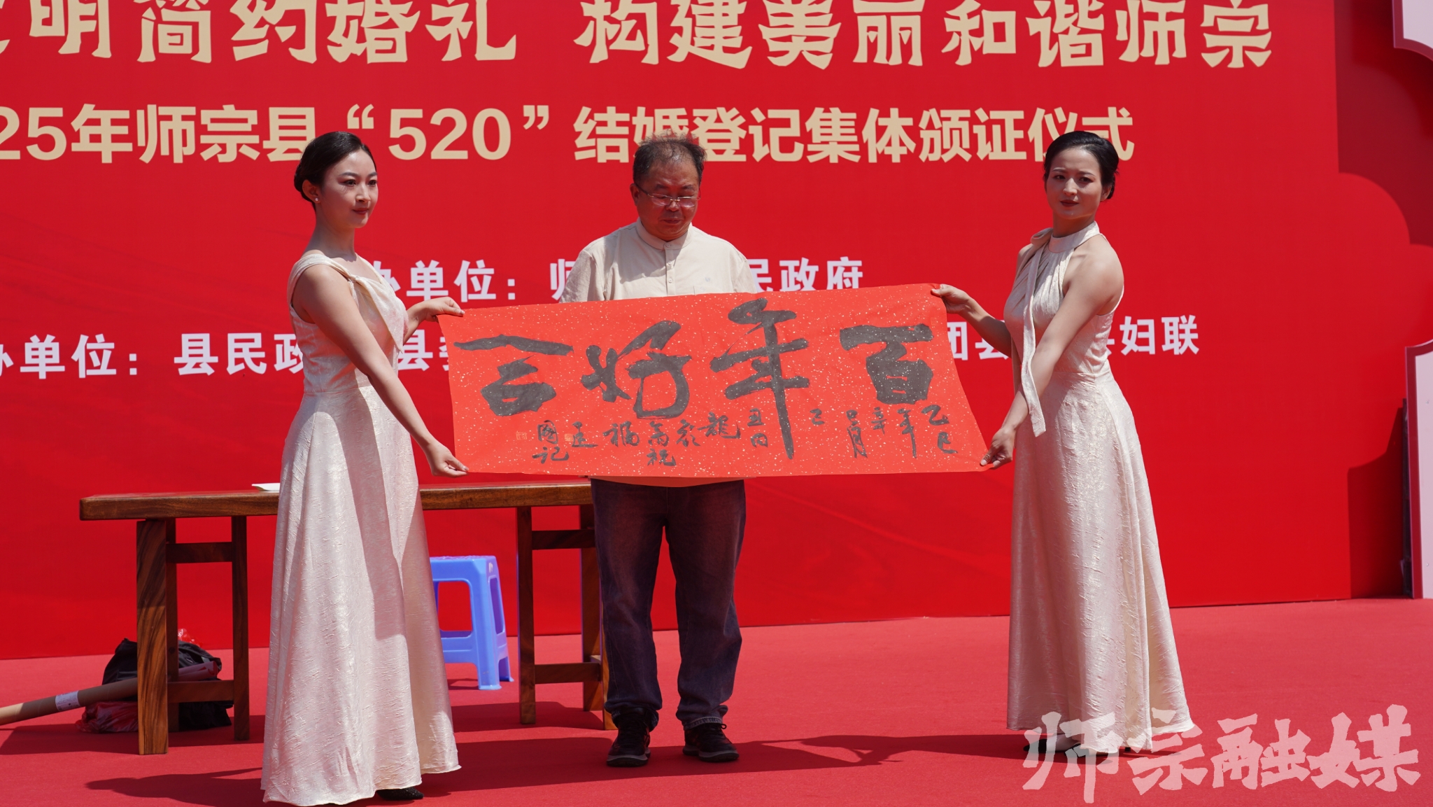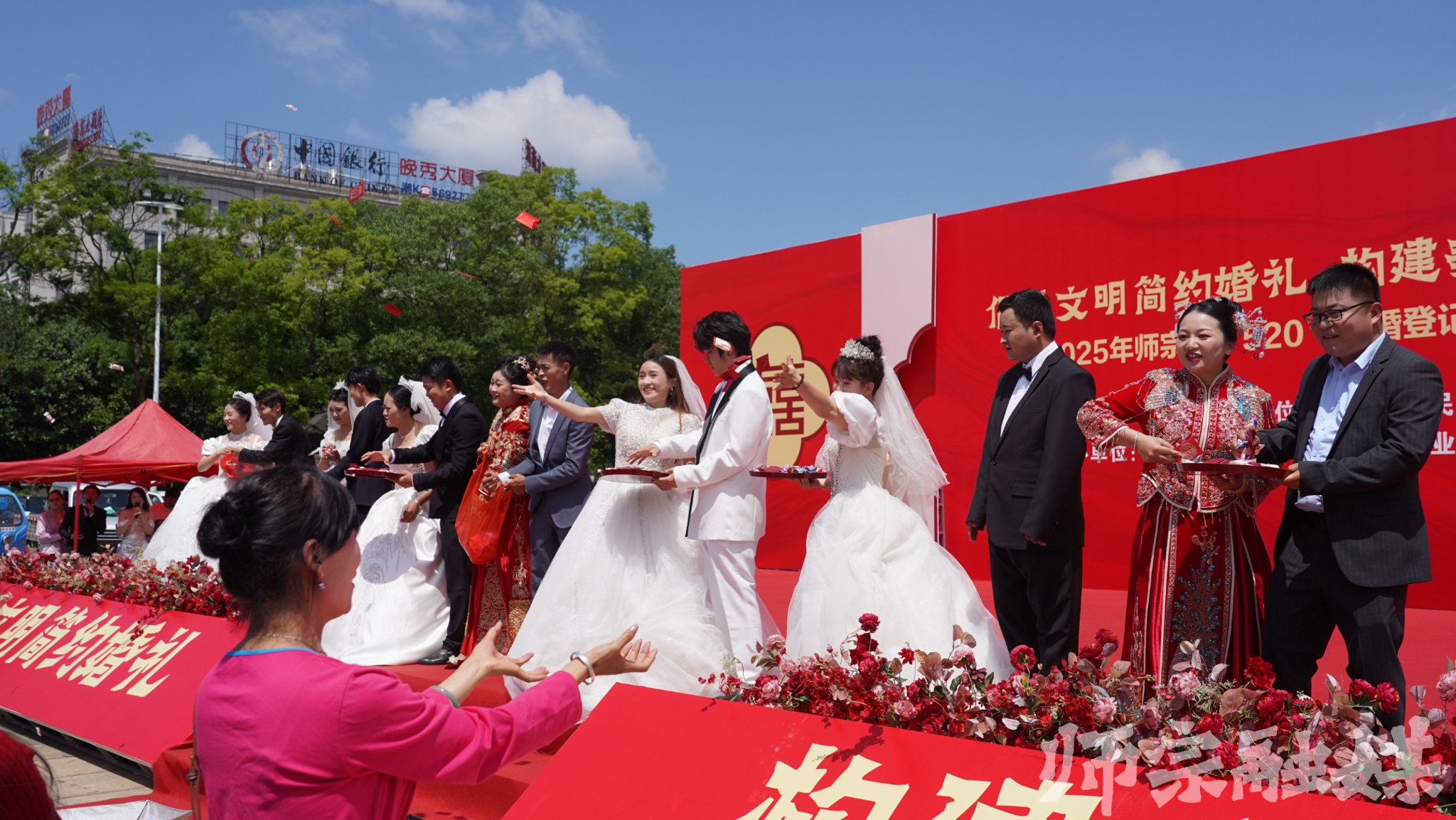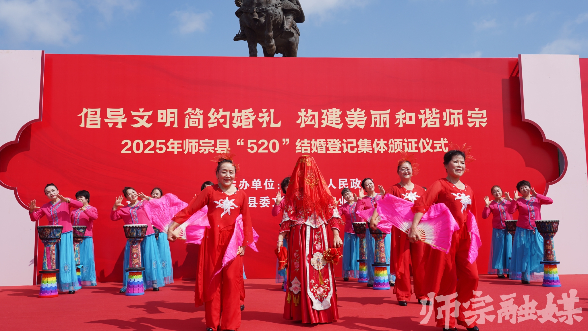 5月20日,师宗县举行“倡导文明简约婚礼·构建美丽和谐师宗”结婚登记集体颁证活动,旨在弘扬中华优秀传统婚俗文化,倡导文明简约的婚礼新风尚。