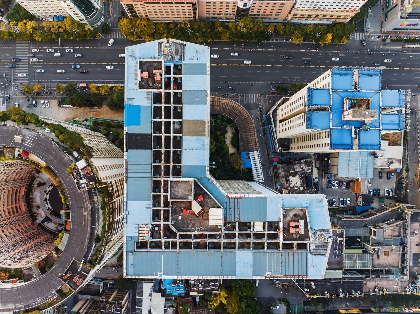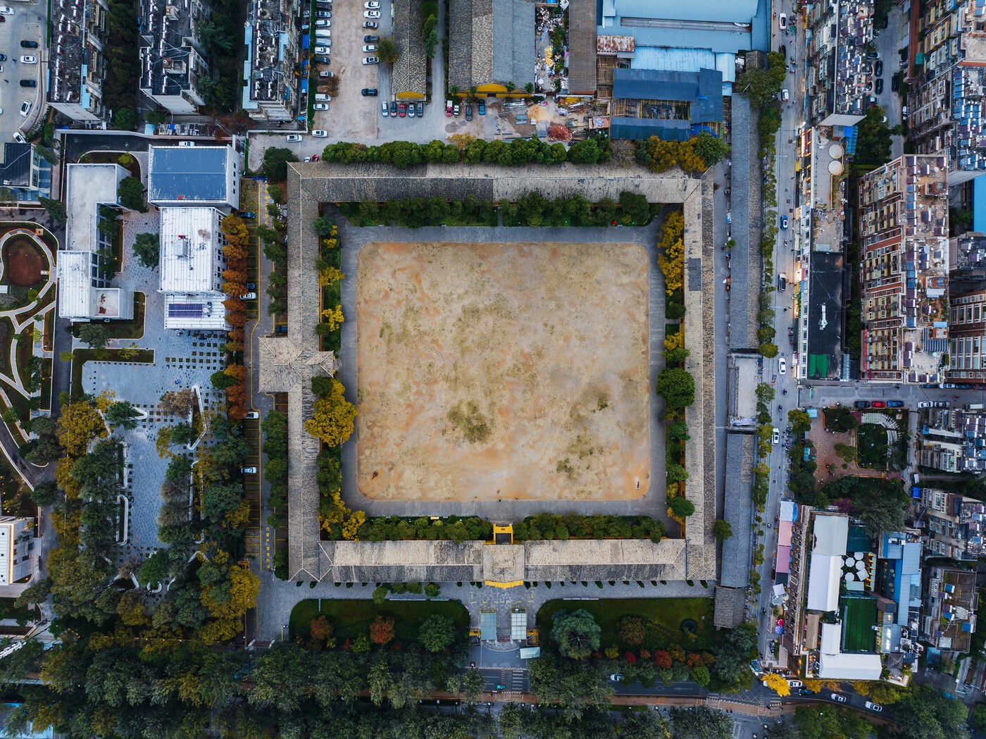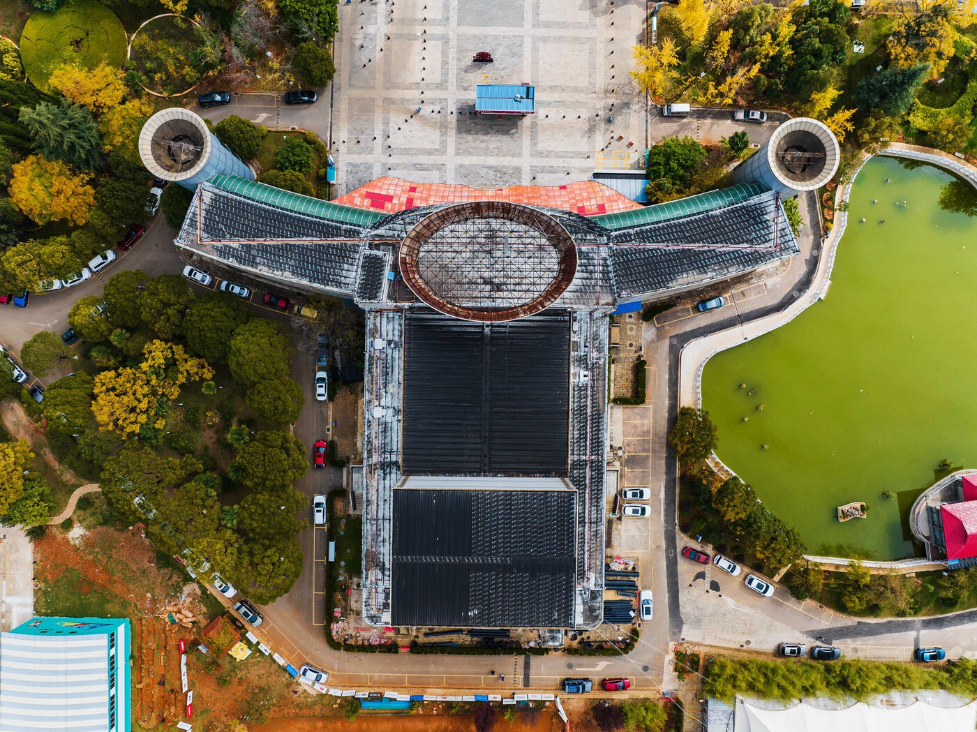 在前期规划中,从“天上视角”到地面实景都是李贞泰需要考量的方向。他利用卫星地图对昆明全域进行扫描,标记出疑似字母形态的建筑群或道路结构,每个字母备选2至3个拍摄目标。例如,“P”选定为螺蛳湾国际商贸城的停车场副楼,“Q”则取自云南民族大学的圆形体育场的俯视轮廓。