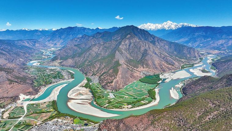 通过持续推进金沙江防护林建设,位于丽江市石鼓镇的“长江第一湾”生态环境保护修复成效明显,碧绿江水缓缓流淌。 本报记者 陈飞 摄