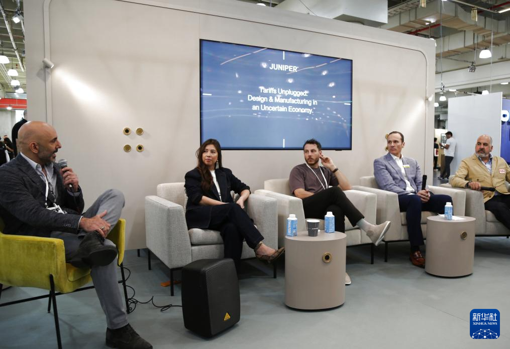 5月18日,嘉宾在美国纽约举行的2025年国际当代家具展上就关税进行小组讨论。新华社记者 刘亚南 摄