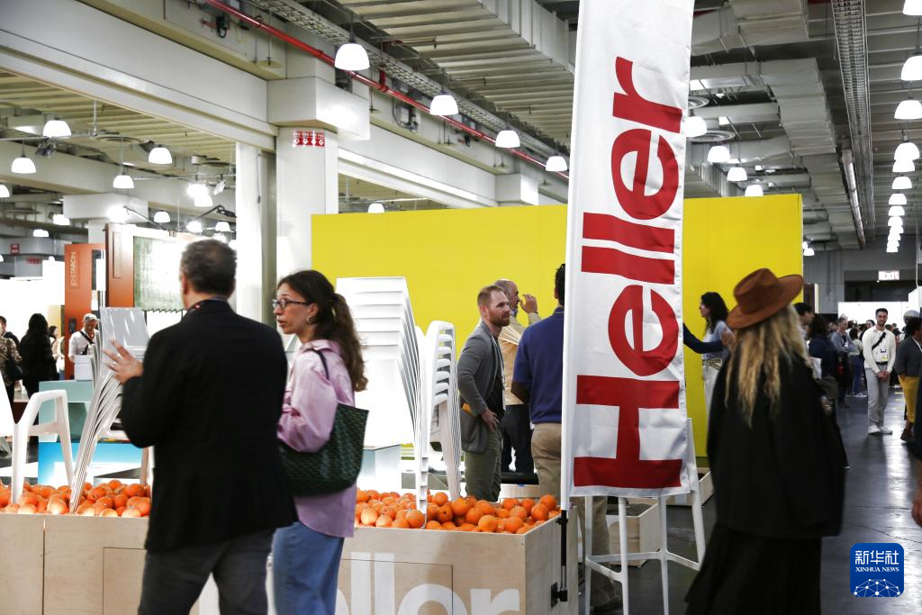 5月18日,在美国纽约举行的2025年国际当代家具展现场,人们在美国康涅狄格州家具企业赫勒公司的展区参展。新华社记者 刘亚南 摄