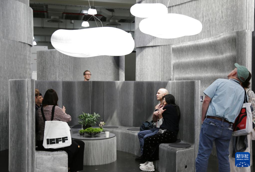 5月18日,人们在美国纽约举行的2025年国际当代家具展现场参观。新华社记者 刘亚南 摄