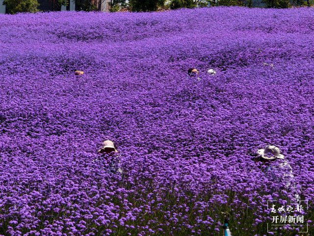 走进牛恋小渔村,五彩斑斓的房屋错落有致,大片绚烂的紫色马鞭草花田与滇池的湖光山色相互映衬,构成一幅绝美的乡村画卷。