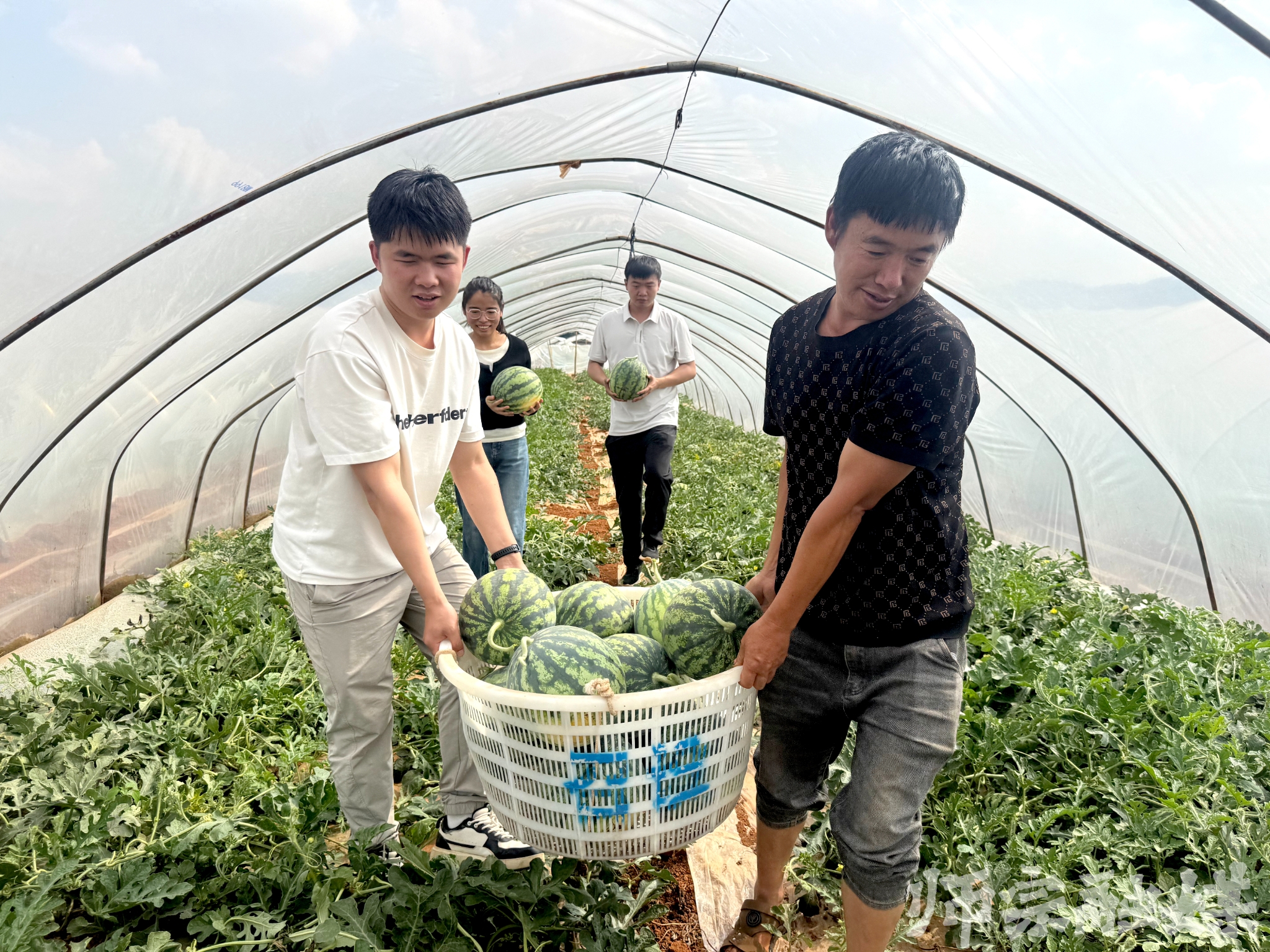 漾月街道新村社区地处师宗县城郊结合部,交通便利,地理位置优越,这里气候温和、土壤肥沃、光照充足、水源丰富,具备西瓜生长的天然优势。种植出来的西瓜个大、瓤沙、汁多味甜,尤其是“招设西瓜”,凭借其皮薄肉嫩、清脆爽口的特质,成为了本地农产品的一张响亮“名片”。