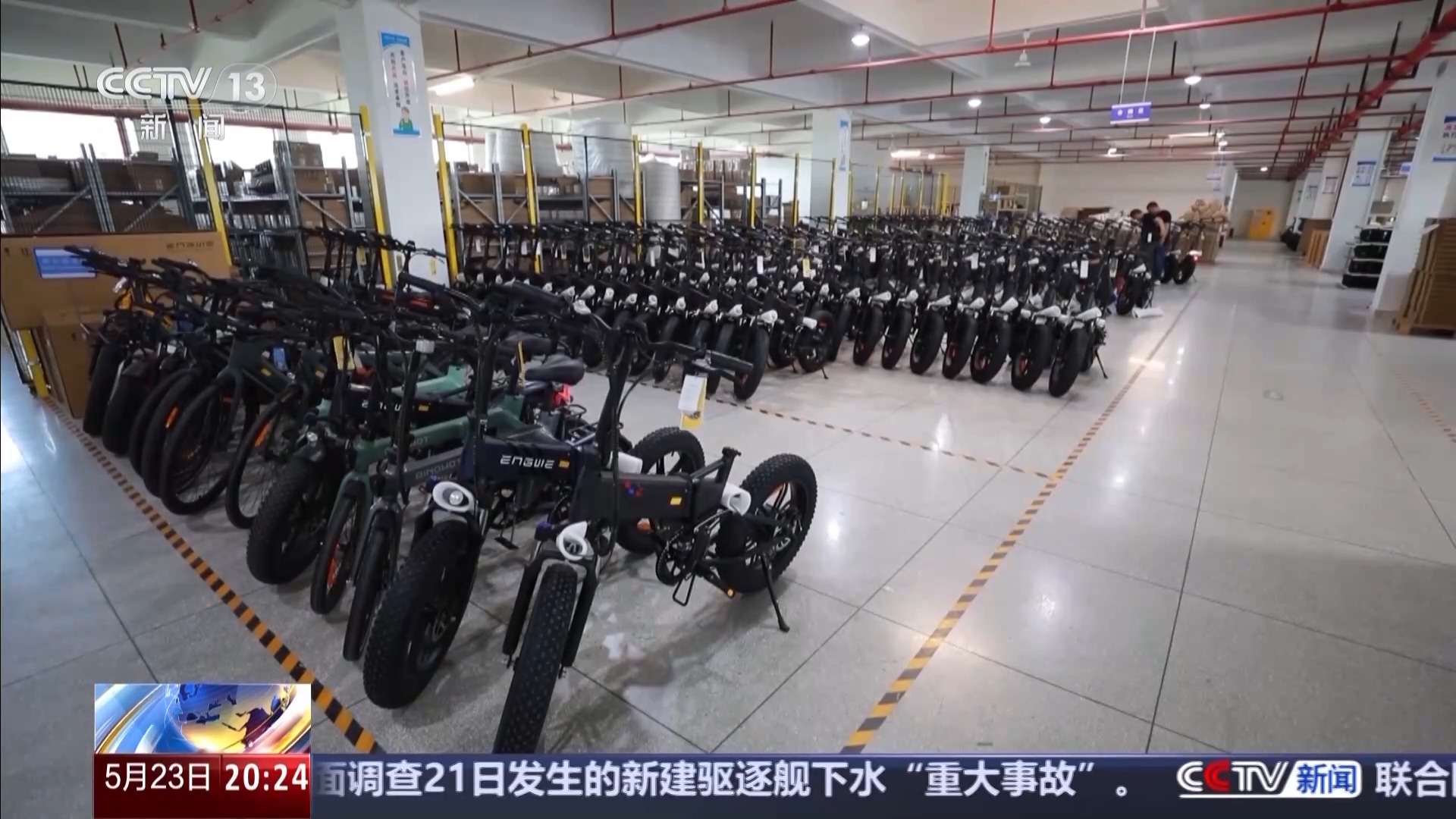 总台央视记者 王莉:我骑的就是企业出口到欧洲的一款车型,和我们认知中的电动自行车不一样,这款车的车把上没有油门,不会一转把就加油。因为这款车是专门针对欧洲的法规标准进行的设计,在欧洲,大部分国家是不允许电动车带油门的,电助力就是靠脚镫子,只要我一蹬,马上就能感到强劲的动力。