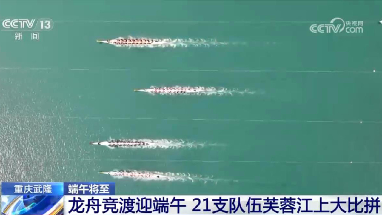 央视网消息:再过几天就要迎来端午节了,目前全国各地的龙舟赛陆续开赛。近日,第18届芙蓉江龙舟锦标赛在重庆市武隆区芙蓉江三河口水域举行,21支龙舟代表队挥桨竞渡,展现水上的速度与激情。