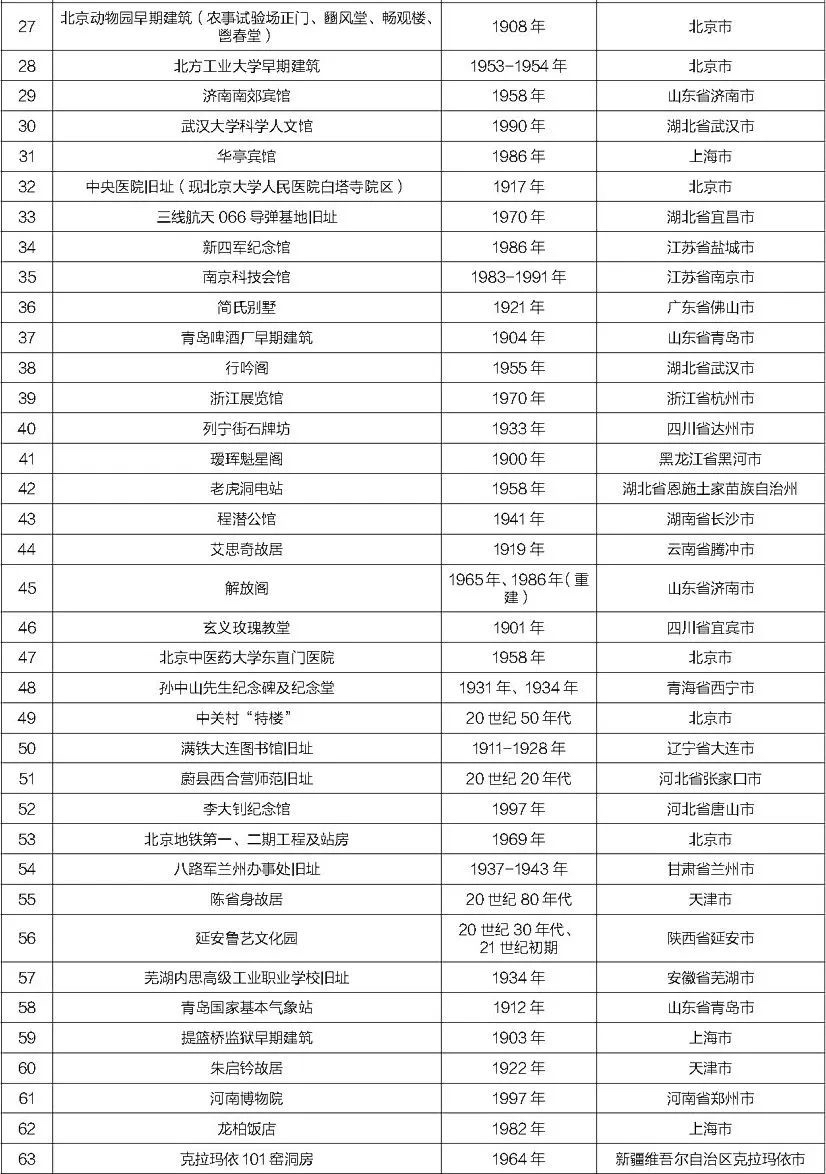 第十批20世纪建筑遗产推介项目名录: