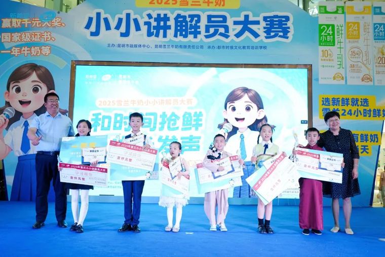 决赛现场小选手们金句频出、亮点不断,有身穿彝族、傣族、景颇族等少数民族服饰的讲解员,有战胜牛奶终结者的“雪兰特工队”、与时间赛跑的牛奶闪电侠,还有一群群雪兰牧场的小奶牛......从讲解内容到风格造型都创意不断,将专业知识融入童话故事。从免疫球蛋白到乳铁蛋白,这些专业术语在小选手们口中变得生动有趣。认真用心的态度和无限的创造力,让舞台充满活力,为雪兰牛奶赋予了新的诠释和生命力。经过激烈的角逐,大赛最终产生了一二三等奖、最佳风采奖。颁奖仪式上,孩子们拿到奖状和奖学金,乐得合不上嘴。本次总决赛中,一等奖选手获得了1000元奖学金和1年的雪兰优质乳,二等奖选手获得了500元奖学金和半年的雪兰优质乳,三等奖选手获得了200元奖学金和3个月的雪兰优质乳,最佳风采奖的选手则获得了1个月雪兰优质乳。“这场别开生面的比赛不仅为孩子们提供了展示舞台,更创新性地传播了雪兰牛奶知识,小朋友们让专业生产流程变得妙趣横生。雪兰牛奶给参赛选手准备了丰厚的大奖,同时小选手们优秀的文稿还将刊登在昆明市融媒体旗下的主流媒体平台,孩子们也有机会走进雪兰工厂成为一名真正的讲解员,在得到锻炼的同时,也为参观者提供专业的服务。”大赛组委会相关负责人说。“本次大赛小选手们在短短的时间内有了巨大的进步。从复赛的怯场、稿件不熟练,到决赛舞台表现能力优秀,可以说是一名非常合格且优秀的讲解员,离不开都市时报文化教育培训学校的老师们的辛勤付出。希望这一次展示只是各位选手的一个起点,能从雪兰牛奶小小讲解员大赛的舞台走向更大更广阔的舞台。”昆明广播电视台知名主持人、本次大赛的评委穆琳说。“这次雪兰牛奶小小讲解员大赛决赛让我看到了小选手们的无限可能!首先是幼儿组的,他们居然能把免疫球蛋白、乳铁蛋白这些非常专业的名词背出来,非常棒!而小低组和小高组更是精彩纷呈,让我看到了孩子们的潜力非常大。稿件质量也非常高,虽是命题讲解,但大家能展示出个性和特色,这也是难能可贵的!总之这个大赛对小选手们的语言表达能力锻炼非常大,建议大家多多参加。”昆明广播电视台知名主持人、本次大赛评委刘语说。