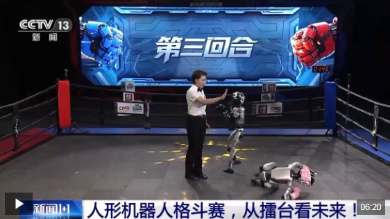 总台央视记者 徐卓阳:用一个词简单概括叫需要“软硬兼施”。格斗是对抗性非常强的激烈运动,要能够在台子上站稳不倒,下盘能够扎得牢,稳定性、平衡性至关重要。首先取决于机器人的硬件,用术语来说叫作机器人的机械结构,赛前团队会做大量的测试和矫正,要让他们的机械结构调整到最佳状态。比如哪一个部分容易受损,就有针对性地去调整哪一个状态,最终呈现出来的是我们看到的完美的比赛。另外就是软件,比赛当中出现大量机器人被打得东倒西歪,但是最后仍然能牢牢站住的场景,这就是软件在起作用。它有一个运动驱动的核心算法在控制它全身上下20到40多个电机,在那一瞬间快要倒地的时刻高速运转,最后保证稳稳站住。正是软硬兼施、双管齐下,才保证了我们看到的“拳拳到肉”。