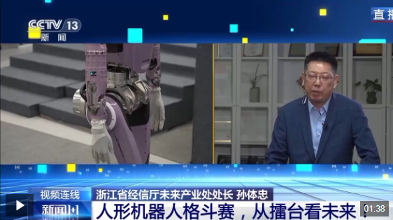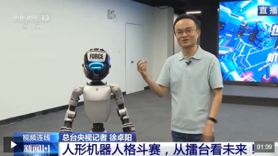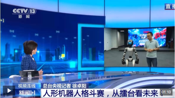总台央视记者 徐卓阳:半马考验机器人耐力和速度,格斗是平衡性、稳定性,包括灵活性等。把这些专业名词去掉,看其中的内核,用人类作比,一个人脑力更好,体力更佳,各行各业都会需要。类比到机器人也是一样,如果机器人脑力更好、体力更佳,它是不是可以帮我们省更多的事,省更多的劲呢?这就是“开打”,同时是“打开”,打开一扇窗户,让我们看到一个惊叹号,一个问号。惊叹号就是它们居然打得还不赖,问号就是它们以后还能再干些啥?凭借这个问号背后的好奇心和推动力、想象力,指导下一步人形机器人发展迭代,去推动我们生活生产进一步变革。