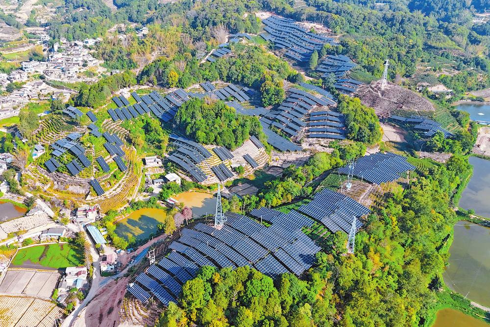 图为中广核云南墨江碧溪235兆瓦光伏电站一角。