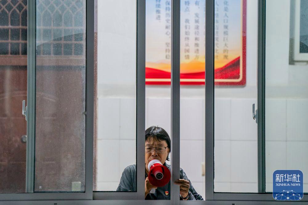 2024年高考首日,张桂梅拿着小喇叭叮嘱将要奔赴考场的考生带好考试用品(2024年6月7日摄)。这个电喇叭被国家博物馆收藏。