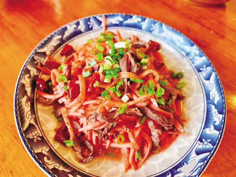 这道酸萝卜炒牛肉也出现在了旺扎家的团圆饭上,厚切的牛肉带着恰到好处的酸味,深受一家人喜爱。“这道菜色香味俱全,大家都爱吃。”旺扎爷爷笑着说。