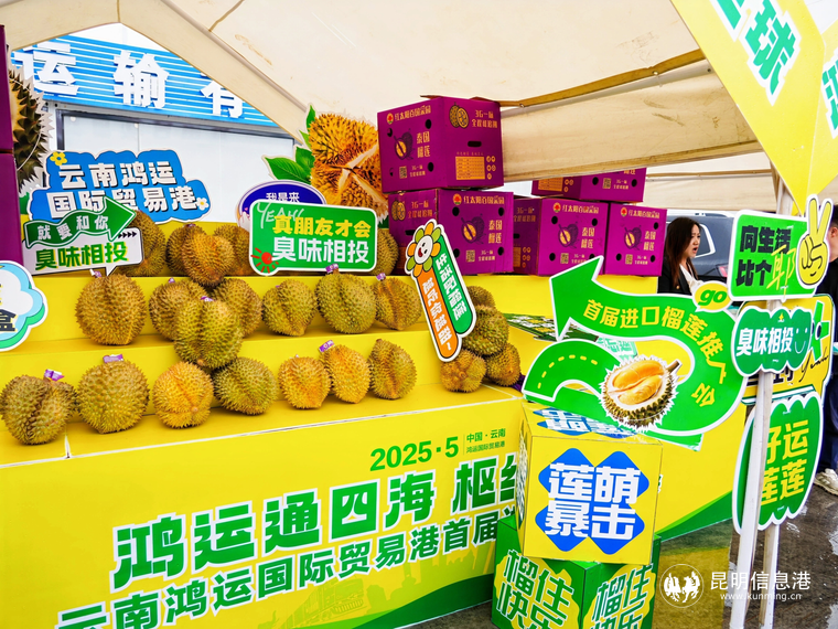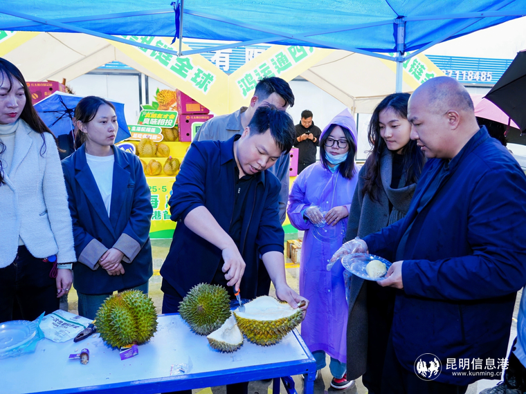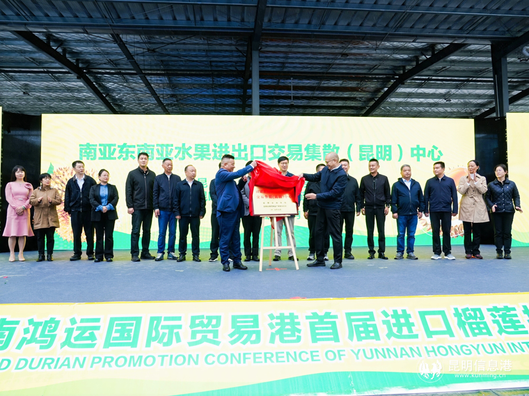 昆明信息港讯 记者栗飞 5月28日,首届昆明进口榴莲推广会暨南亚东南亚水果进出口交易集散(昆明)中心揭牌仪式在昆明经开区(自贸试验区昆明片区)云南鸿运国际贸易港举行。
