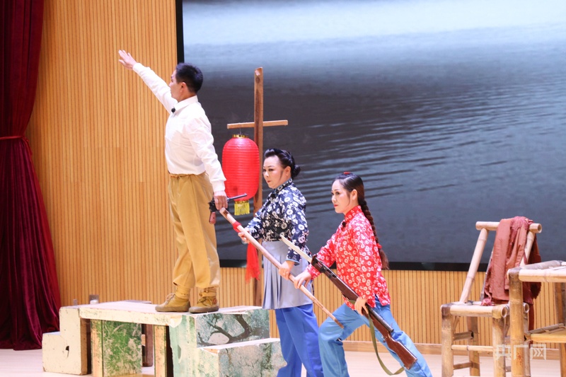 “狂风掀起信江浪,雷雨交加野茫茫……”当天上午,在松山小学,新余花鼓戏《风雷渡》正在上演,演员们以精湛的唱功、细腻的表演和富有乡土气息的舞台设计,演绎了一段跌宕起伏的民间故事,引得现场掌声迭起。